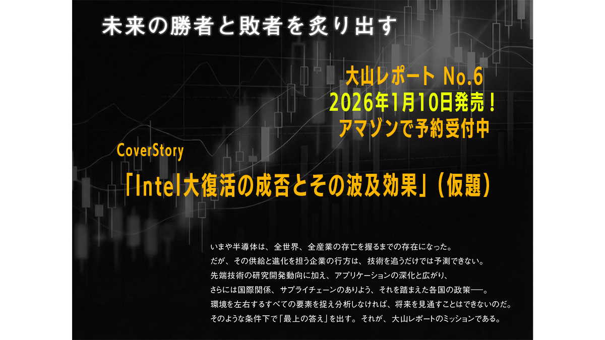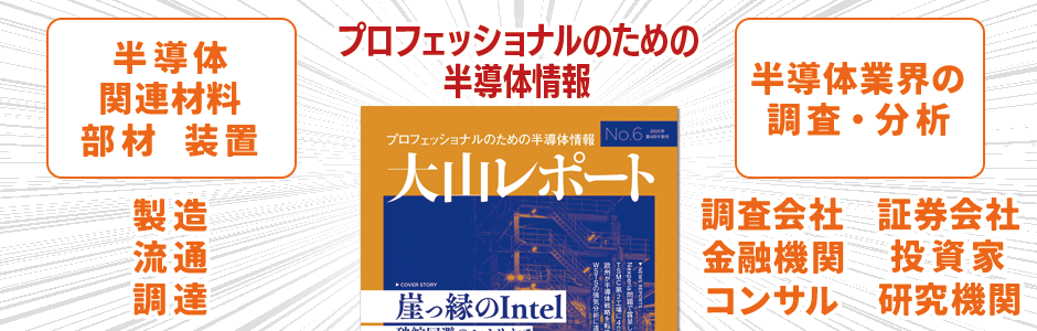 大山レポートは、半導体やその関連材料、部材、装置などの製造、流通、調達に関わる担当者、そして半導体業界の調査分析に携わる投資家、金融機関、証券会社、調査会社、コンサルティング・ファーム、研究機関などを含む「プロフェッショナル」の方々のための半導体情報誌です。